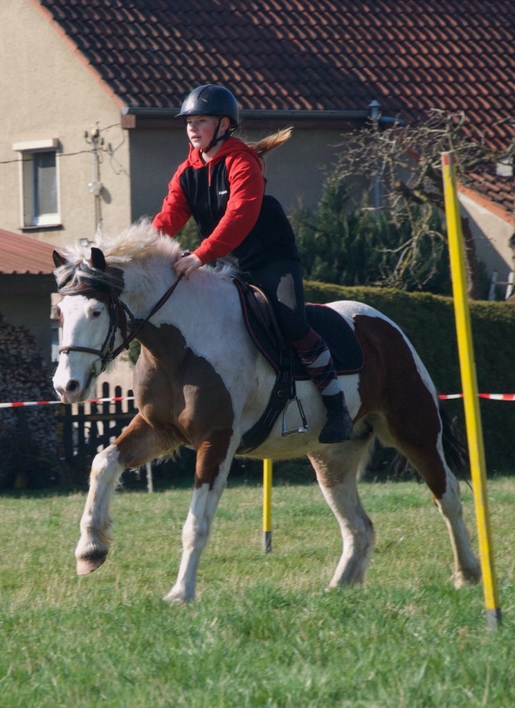 Zusätzlich gibt es einmal pro Woche eine Dressurstunde bei unserer Trainerin, um die feine Kommunikation zwischen Pony und Reiterin zu trainieren, die wir brauchen, um im Mounted Games erfolgreich zu sein.